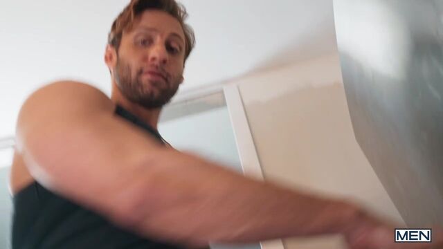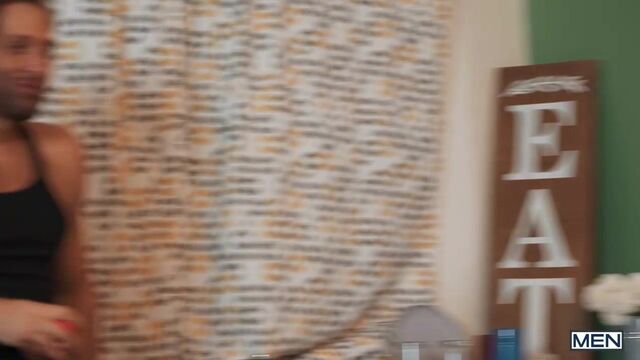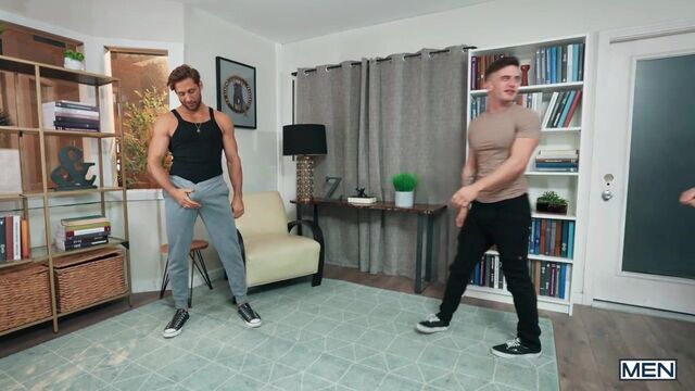 Trevor Brooks caught his roommate Dom King jacking it in the living room with his MenSexGear Rain lube yet again, and he warns the free spirit to be more discreet when his date is over. But when Michael Vente catches sight of Dom's hard-on through his gray sweats, he goes in search of a closer look and sneakily sucks Dom in the kitchen. Trevor's none the wiser as Michael returns to his room to suck him, then penetrate him in doggystyle and on his back. Then the hunks flip fuck, as Trevor rims Michael and fucks him on all fours. Michael rides Trevor till he orgasms, and Trevor gives him another load on his face!
