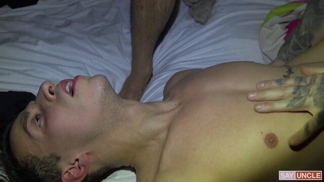 After a wild night, Brett, Des, and Jace are sleeping on the couch completely naked when a stranger comes in. The guy is roaming around the different rooms, looking for a cock to suck, and lucky for him, there are three horny studs to blow. The trio is surprised by the irruption of Zak, the horny stranger, but they never miss a chance to feed a pig bottom with dick, so they start slapping his face with their luscious boners. Nothing gets their blood pumping like a good orgy, so the four go for an intense fuck fest, greeting their new friend by playing with his asshole. Zak proves a worthy addition to the troupe, putting his cum hole to the test. The boys cum all over his hole, filling it up with their juicy load and spanking the tatted stud’s butt to see the cum drip.