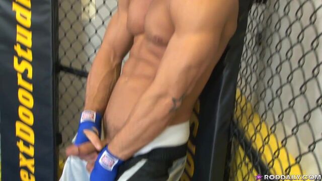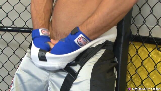 It's that magic season again, fight fans. It's time for some hot, sweaty action in the NextDoor Cage! This time, in a much anticipated battle of bulge, it's Rod 'Dangerous' Daily taking on his own rock hard cock.Watch him wrestle this thick, meaty boner with sharply honed skill. He's displaying his finely tuned technique as he grabs on tight, stroking this pulsating erection methodically. It's a show of physical agility as he bends low, spreading his luscious ass cheeks to stretch open his tight, pink hole. And just when you think the dick might take home the heavyweight title, Daily executes a devastating blow, putting this one in the books forever. Enjoy!