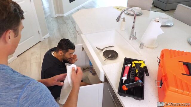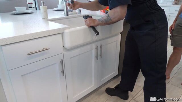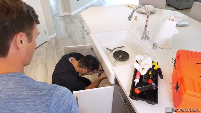 Pervy plumber creeps on tenant while showering.