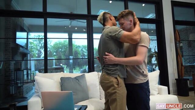 Damian is super excited about an upcoming concert. His stepdad Jax was supposed to get tickets for him, but when the boy asks him, he realizes he has completely forgotten about it. Desperate, he goes online for a last-minute ticket, but everything is sold out. Damian’s heart is crushed and he blurts out the fact that he’s not his real son, breaking his stepdad’s heart. Jax tries to console Damian, so he hugs him tight and tells him he loves him. When wrapping his arms around the twink’s body, he feels the boy’s crotch getting hard and pressing against his bulge. Surprised, Jax asks his stepson if the situation arouses him. Damian confesses his horny feeling to his stepdad, so Jax decides to make it up to him for the concert tickets in a nastier way. Falling on his knees, the hunky stepdad starts sucking Damian’s cock while staring at his eyes, making him promise he won’t tell his mom about this. Damian agrees while enjoying the warm feeling of his stepdad’s mouth gagging on his dick. Now completely naked, the twink goes straight for his stepdaddy’s dick, savoring every inch of it. Jax’s lustful tongue gets freaky again, so he decides to rim his boy passionately before stuffing his asshole with his dick. Jax gives his stepson a hot butt pounding, making him moan until he forgets about the concert and tells him to call him “Sir.” He then pulls out his cock and starts stroking it to shower his boy with his creamy load.