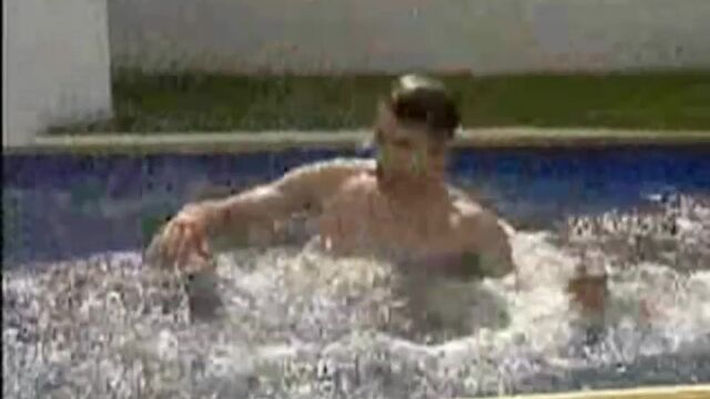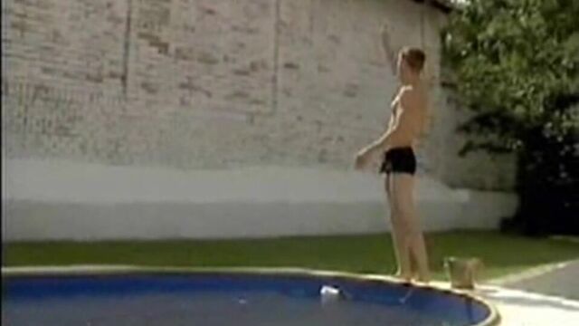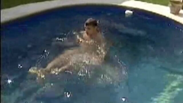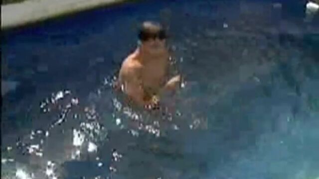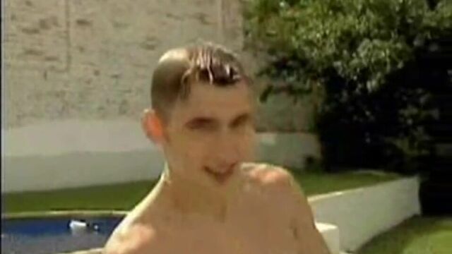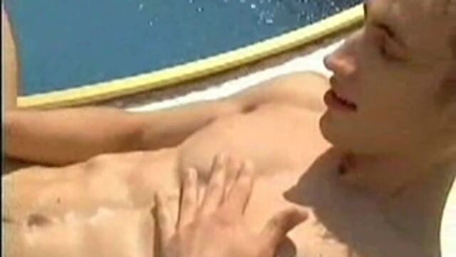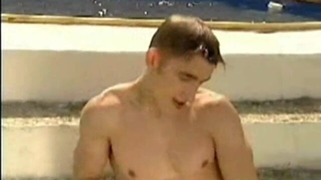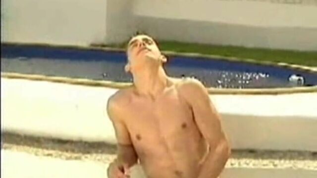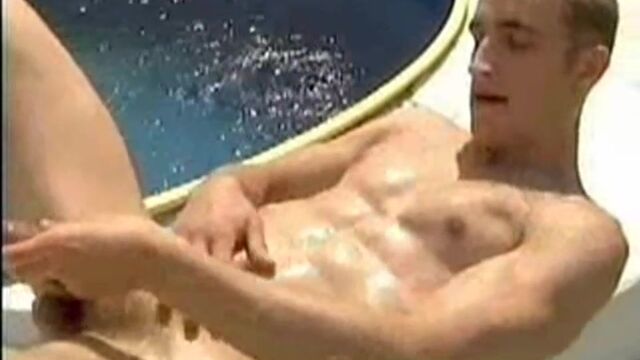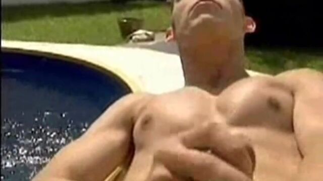 Dinar heats up while catching some sun by the pool! After a quick dip he gets to work on his cock and soon shoots his load on his 6-pack abs!