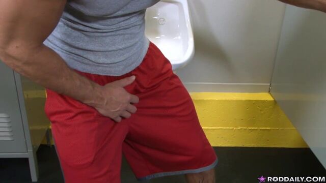 - Description: When Rod Daily takes a quick bathroom break at the gym, he notices something most curious. There's something on the stall door behind the towel. That's strange. Rod's never seen a hole in the wall like that. And what's going on in that stall? Is that James Jamesson jerking his dick in there?? IT IS!Well since Rod has worked up quite a boner during his gym routine, he's gonna see what happens when he sticks his big cock through the hole. And when it pops into James's bathroom stroke chamber, James has no problem rubbing his own hard man pole together with it. Rod decides to suck this mystery dick to see what it tastes like. This gets James all worked up and the two finally show themselves. James figures he might as well fuck Rod's ass while they're both in the bathroom, naked and erect. Hey, it's just common gym courtesy. Enjoy!