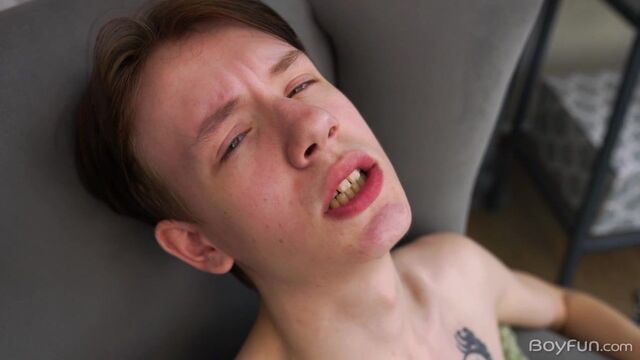 Oscar Miles' cock throbs as he jerks off in an armchair - Boyfun