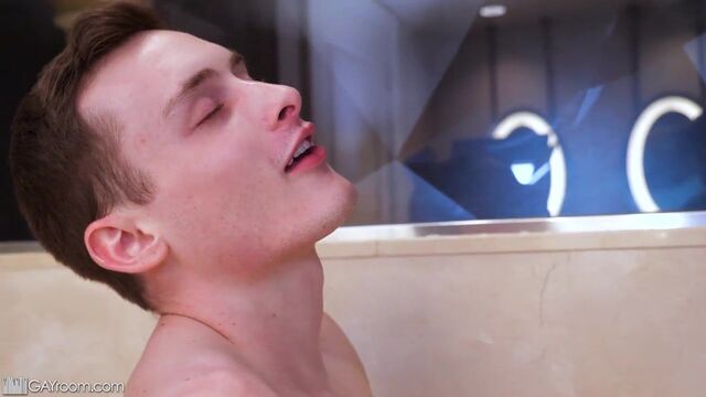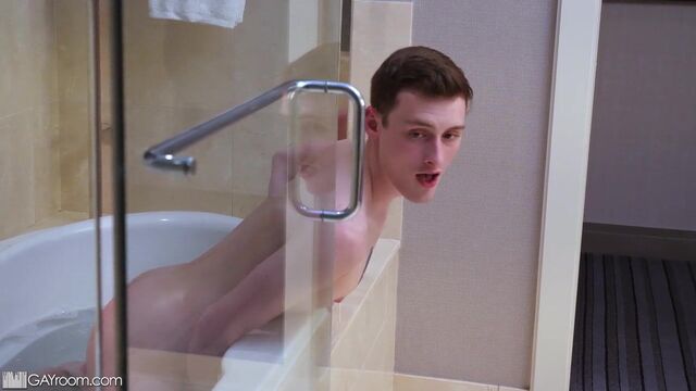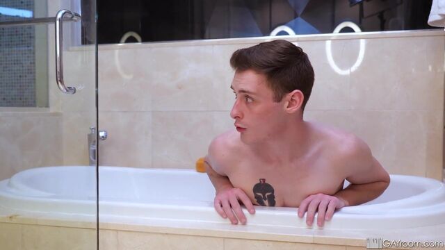 Bubble bath twink gets an unexpected strip show and shower jerk from an unsuspecting sweaty gym daddy.