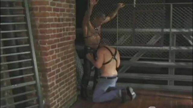 Ryan Lexington offers his oral services to superhung stud Michael Brandon. Michael is a demanding partner, keeping Ryan on his toes. 'Lick that ball-sack. . .I want to see your eyes while you're sucking my cock.' Michael fucks Ryan's mouth with his huge cock, rims him, then fucks him eagerly. Leather stud Jeff Allen enjoys his view from the shadows...slowly and irrepressibly drawn into the action. Soon he's rimming Michael Brandon as Michael gives Ryan a serious ass-pounding. But Jeff has his own needs to satisfy--filling Ryan's throat with his own stiff hard cock. When Michael has satisfied his primal urges and spilled his load over Ryan's back, Jeff takes the opportunity to fuck Ryan's ass...giving in to his carnal instincts and surrendering to a powerful orgasm before slamming the load out of Ryan.