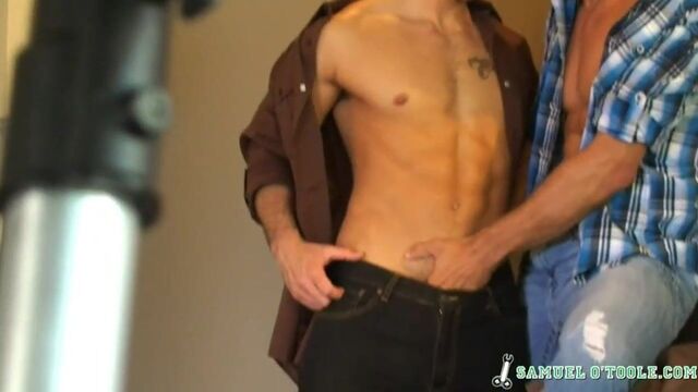 - Description: Samuel O'Toole and Brandon Lewis are on the set having photos snapped at every direction. These two studs are warming up for the actual scene.