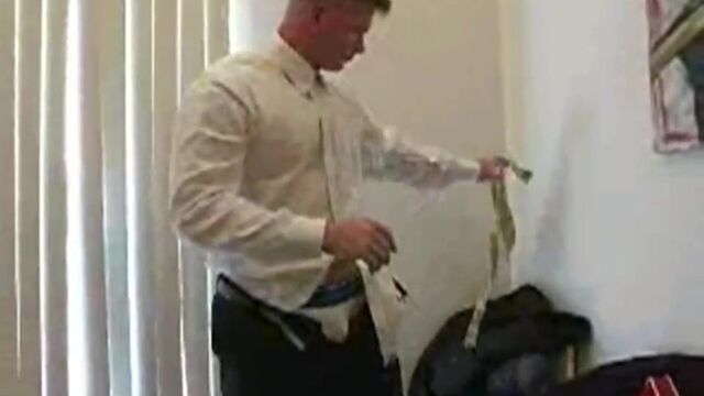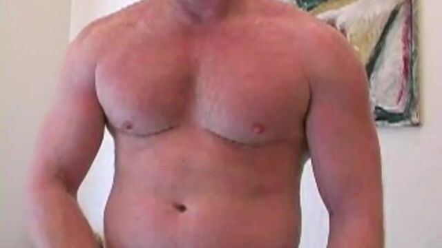 Now this is a man that knows how to fill out a suit! Mark's broad shoulders and great pecs are truly inspiring. Definitely an exhibitionist, he starts off with a little crotch play outside on the balcony for all the world to see. We get just a glimpse of his hard cock through his undies, but soon he is inside and getting out of his business attire and getting down to business. Who would have guessed that when he opened his pants, a white Calvin jock was hiding beneath!He stands up, bends over, and shows us a meaty backside that is just as impressive as that chest. Knowing how to give his audience just what they want to see, Mark reaches back, spreads his cheeks, and give us an up close and personal peek. Furiously stroking his cock, Mark moans and grinds on the floor. This is one guy that is definitely into nip and ass play. He slips one or two fingers in again and again, until he lifts his hips and shoots a load straight up to those nipples that he loves to squeeze.