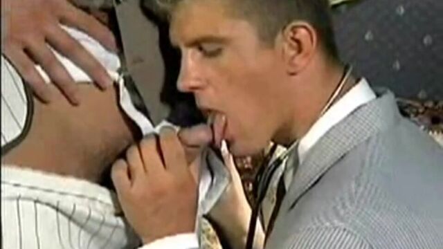 Gerry has summoned the doctor and finds that Ray has a head injury and may recover with rest and care. Gerry is also overcome with the sight of Ray laying so silently on the bed, but takes his lust out on the doctor, Stenley Underberger. He bends Stenley over the tub and fucks him mercilessly!