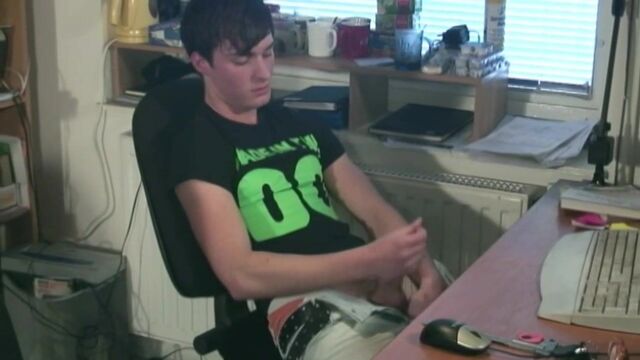 Sneaking in a quick wank at work, this cute dark haired twink gets caught by a blonde beauty who takes advantage of the horned up boy and soon gets him on his knees servicing his dick. Bending over the chair, our blonde star gets his hole well and truly stretched with an almighty bare dick, pushing him to the limit and further as he pounds away whilst the horny bottom boy jerks off. Exploding with cum all over the desk, he loves the feel of hard dick up his ass, shooting his load twice, we get three doses of jizz from just 2 guys!!