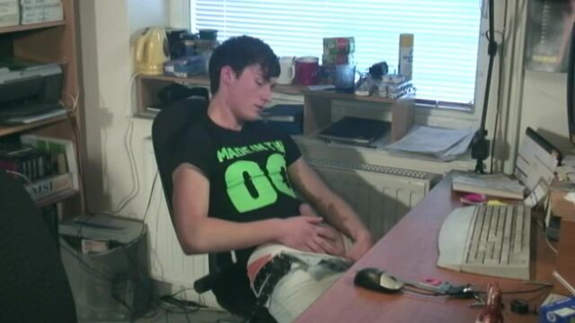 - Description: Sneaking in a quick wank at work, this cute dark haired twink gets caught by a blonde beauty who takes advantage of the horned up boy and soon gets him on his knees servicing his dick. Bending over the chair, our blonde star gets his hole well and truly stretched with an almighty bare dick, pushing him to the limit and further as he pounds away whilst the horny bottom boy jerks off. Exploding with cum all over the desk, he loves the feel of hard dick up his ass, shooting his load twice, we get three doses of jizz from just 2 guys!!