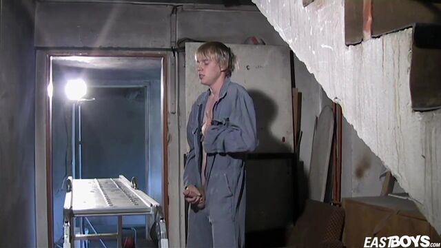 This video starts in typical dilapidated Communist era subdivision, it's scenery dramatically improved by presence of our super cute twink, on his way to work killing time. And after arrival to work while alone, guess whats on his mind. Well it's something which will definitely not improve productivity, and it is 4 letter word starting with a C. Did I mention he also has great body?