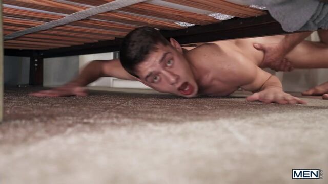 Joey Mills and his BF Shadow hook up on the couch, but when Shadow unexpectedly cums too soon all over Joey's face, he lets himself into Shadow's roommate Sumner Blayne's bedroom for another helping of dick. Sumner's happy to oblige, fucking Joey doggystyle... until he gets a call. The frustrated bottom picks up a vape but drops it under the bed and gets stuck face down ass up! Which is how Shadow finds him, and puts that hole to good use. When Sumner returns, the two tops share, spit-roasting the twink and both cumming on his face.