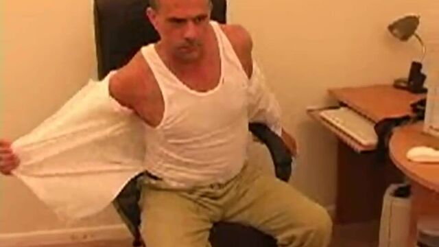 - Description: Cliff came to see us, and right then and there we knew that we had met the epitome of the ultimate 'Daddy'. With his sophisticated salt and pepper hair,smoldering Italian good looks, and a cock that was rock hard from minute one, this weeks update is a true find. He started undressing, and when the shirt and tie came off, there was a 'wife-beater' underneath, and we expected nothing less!A very aggressive, top-only kind of guy, Cliff told us about a few of his experiences in the leather scene, giving us some insight into what that leather armband really means. He surfs some porn at his desk, until finally it's just too much for him and he sheds his pants and undies revealing the ultimate yin/yang...a leather studded cock ring hiding under stuffy 9-5 business wear. Cliff leans back in his chair, stroking his dick until he spills a white hot pool all over his crotch and thighs. He then gives us an extra treat as he lets the camera come with him as he cleans up in the shower. This Bear is certain to heat up your monitor and get your keyboard clacking.