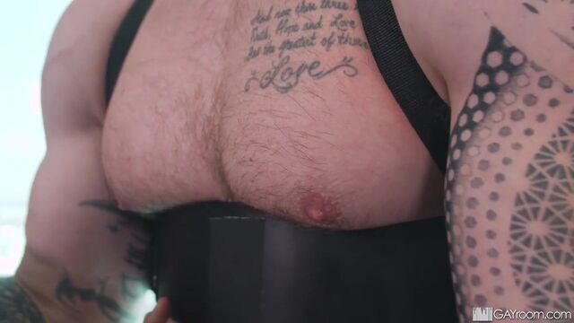 Brad is obsessed with muscle. He sucks off Jackson during a pump session and ends up ass up, getting pumped himself!