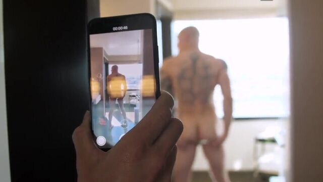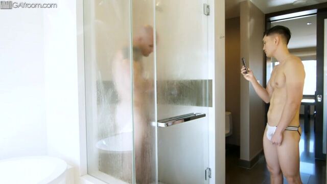 Hot Asian underwear vlogger gets caught recording his naked bodybuilder roommate in the shower.