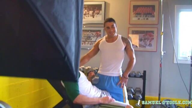- Description: Samuel O'Toole and Parker London are on the set having photos snapped at every direction. These two studs are warming up for the actual scene.