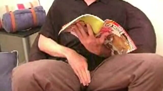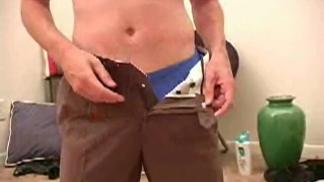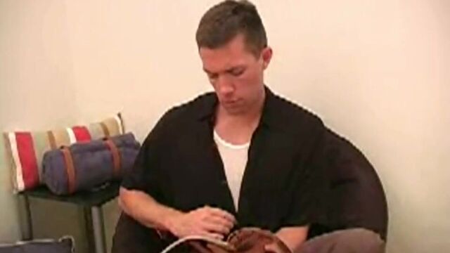 When Joey walked in carrying a bag with a few magazines from home, we knew this All-American looking hot one was ready to get down to business. Wasting no time, and paying little attention to us, he flopped right down in the chair and started thumbing through the mags, looking for just the right page to inspire him. He obviously found it, because his dick was stiff and throbbing before he even got his pants off. Seeing his huge member push against those tight, electric blue boxer briefs made us thankful for spandex!Joey didn't want us just to focus on his front, he spent some time bending over and pushing his cock through his legs, sliding his hands over his tight little touche. That seemed to get him even hotter! He focuses his attention back on the magazine and the matter at hand. Joey doesn't care for traditional lubes, so he requested regular ole' hand lotion instead, and we were more than happy to oblige. He gets on his knees, working that beautiful dick over a photo featuring one almost as big as his. He squirts a load so thick, the pages of that magazine will be stuck together for a very long time.