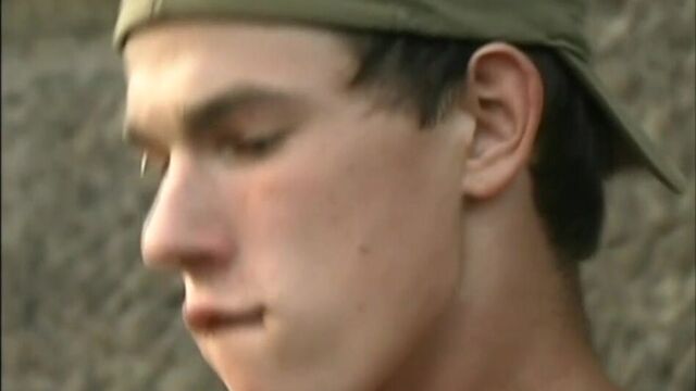 Tall, dark and lean Mark discovers Felix playing with himself. He has a couple of small tattoos on his upper arms, a big uncut cock and balls to match. He pulls off Felix's pants, gets his legs in the air and then tongues and fingers his vulnerable shaved hole before asking his very big cock in. They are then joined by Nico. Felix and Nico fuck each other while Mark plugs their mouths. Three very big loads to finish.
