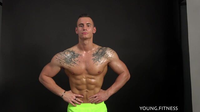 Lets see some proper muscle flexing, and some massive biceps. We have 1/2hour of proper flexing and oiling up. close ups of muscles from every angle, pecs bouncing, and abs contracting. Awesome body as you may agree and there will be more.