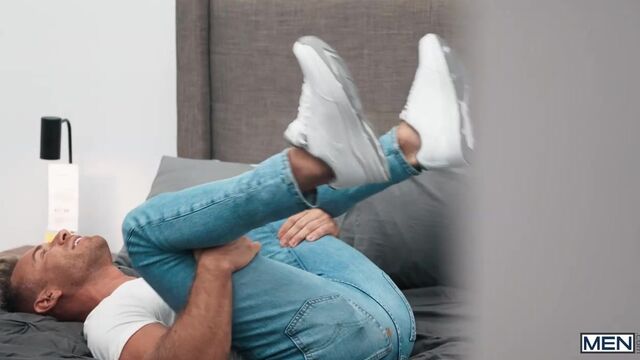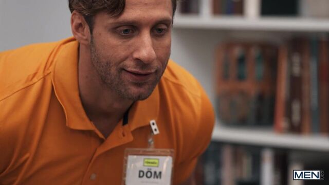 Sumner Blayne's boyfriend can't find an employee in the furniture store when he wants one, but employee Dom King spots hot Sumner shopping and follows him into the bedroom section. Sumner tests out a bed, and when he bends over and splits his jeans, Dom springs into action and slides his dick inside the bottom's hole! They hide under the covers from Sumner's BF, then Sumner rides the top and the guys suck each other. Dom pounds the bottom on his side and on his back till Sumner cums, and Dom pulls out and shoots all over the duvet, as the shopper leaves him to clean up the mess!