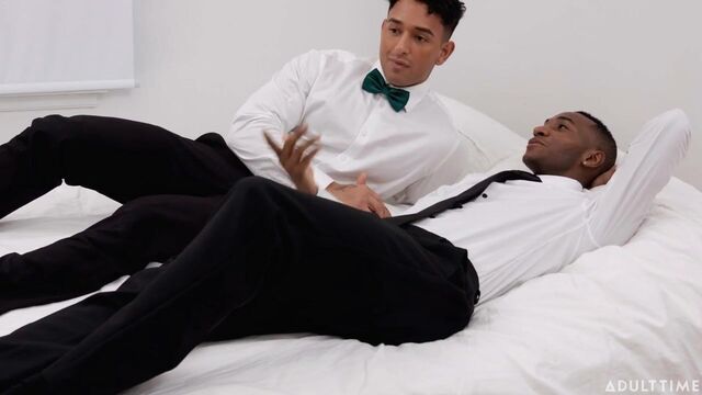 Two straight jock friends, Kenzo Alvarez and Kai Taylor, are getting ready for prom night. As they put the finishing touches on their outfits, they grumble about how everyone tonight is going to get laid -- except for THEM. This is because their longtime girlfriends have taken an abstinence pledge since they don't want to have sex until marriage. Although the guys respect their girlfriends' wishes, it still sucks because HOW are THEY going to get through the night knowing that the goodnight kiss will be ALL they get??Kenzo and Kai continue grumbling, lamenting about how AWFUL it's going to be seeing everyone else sneaking off to get laid. It's going to drive them INSANE since they'll be super horny without ANY chance of relief with their OWN girlfriends. That's when they eventually realize that the only way they'll make it through the night is to jerk EACH OTHER off beforehand!
