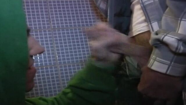 Marco Bill and Robin Few in a public toilet BJ video - Staxus