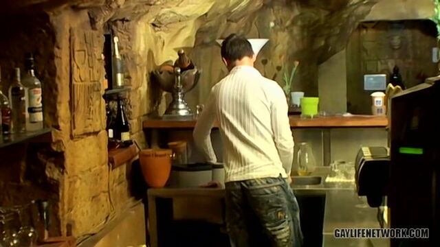 Cristian jerks off in the glass before serving drinks - BeddableBoys