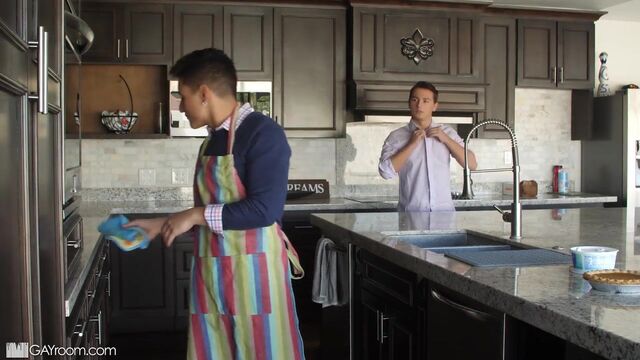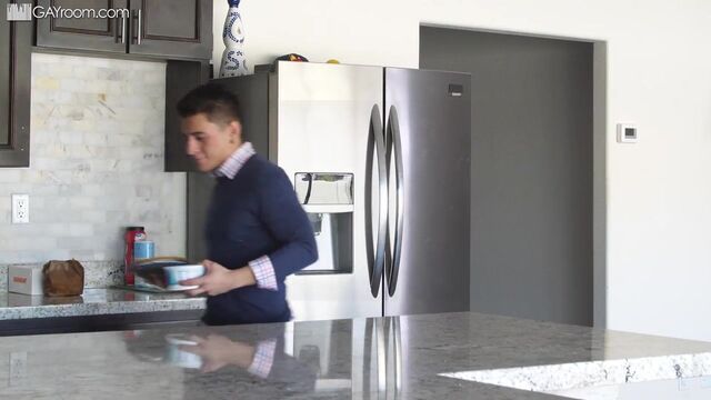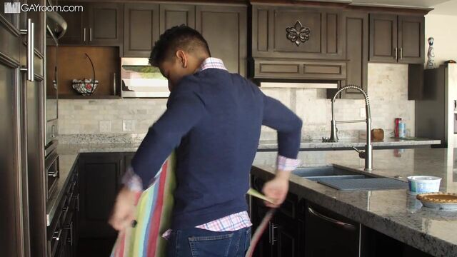 Twinks have a hardcore Thanksgiving fuck in the kitchen while they wait for dinner to be ready.