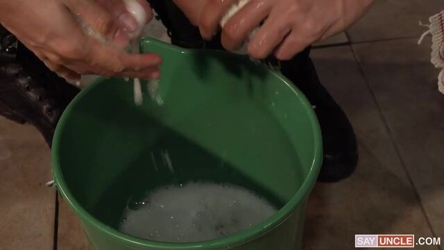 General Rose thinks the cadets are too pampered and unprepared for the battlefield. They are too used to modern amenities, so he decides to haze them by forcing them to clean each other without a shower. The cadets get naked in front of his general and start rubbing each other’s bodies with a wet cloth. Noticing that they are not thorough enough, General Rose tells them to suck each other’s cocks until they are clean. The soldiers obey, secretly enjoying the taste of the fellow private’s dicks in their mouths. Soon, the general joins them to fuck the boys’ mouths, turning the whole hazing into a nasty orgy.