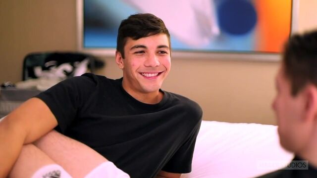 Boyfriends Alex Riley & Jacob Hansen are staying at a spicy hotel which gets them horned up real good. The boys start talking about what really turns them on, and Hansen heats up with an immediate answer; 'three way.' Doing him one better, Alex instantly finds hot blond, Aaron Roberts, online and he's definitely down for a dicking. The boys get to work right quick, and the triple trouble is tantalizing.