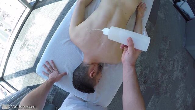 - Description: Little guy pampers himself with an in-room spa day and gets his hole worn out by an uncut, hunk massage therapist.