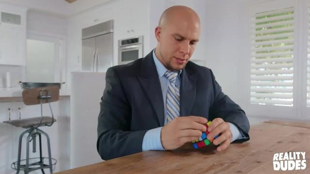 Eli Hunter is ready to cum out victorious in a challenge with Max Blairwood. Eli resolves to solve his puzzle cube before Max cums, but the tanned top isn't going to make it easy for him! Max distracts Eli by sucking his cock under the table, then undresses the bottom and fucks him mish. Despite Eli's best efforts to maintain his concentration as he gets his hole pounded doggystyle, he fumbles the puzzle, then puts it aside so he can ride Max's cock. By the time the top cums all over Eli's face, Max has got the challenge on lock... or does he?
