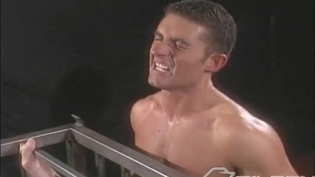 Kyle Becker stumbles across a captive Jason Fox. Kyle teases Jason with his stiff cock...letting Jason settle into a good suck and then withrawing to another corner of the cage. Jason greedily pursues Kyle's hard prick and Kyle rewards his captive by fucking him through the bars. Finally, Kyle strokes himself off...all over his desirous devoted captive.