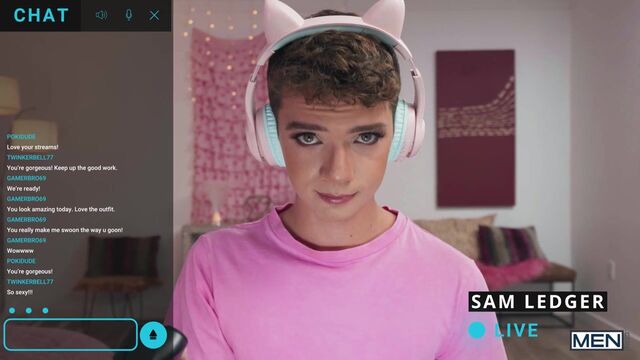 - Description: Femboy Sam Ledger starts getting so horny on stream, he has to log off so he can take care of his big hard-on. As Sam goons, his new stepbrother Drake Von walks in on him and starts getting horny, especially when he watches Sam use the MenSexGear Fluffer penis pump to ratchet his arousal even higher. Drake is so distracted with his dick in his hand, he trips and falls into the room, and begs the interrupted femboy to bang. Sam sits on his stepbro's dick, then Drake rims the bottom before fucking him on all fours. Sam sucks the top and rides him on the bed, then cums as his stepbro drills him on his back. Time to mess up Sam's makeup with a facial!