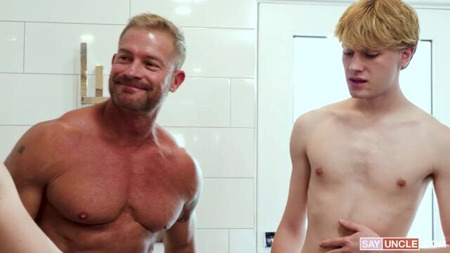 - Description: After a long day of training for the swimming competition, Greg and his stepson Zacc hit the showers. They are joined by Skylar, a friend of Zacc's who’s actually a bit shy about sharing the shower with other guys. Greg and Zacc reassure him and help him relax by fooling around with him. Soon, both Zacc and Skylar are sucking Greg’s dick, with both of their mouths savoring every inch of the dilf’s meat at the same time. Out of the blue, Brody, Skylar’s stepdad, walks into the showers. Shocked to see his stepson eating another man’s cock, he demands an explanation. Greg invites him to join them as Zacc reaches out for Brody’s dick. The concerned stepdad’s worries go away as soon as he feels the twink’s mouth gagging on his boner. A horny foursome unfolds as the two stepdads grab the cute twinks’ butts to stuff them in the steamy and wet ambiance.