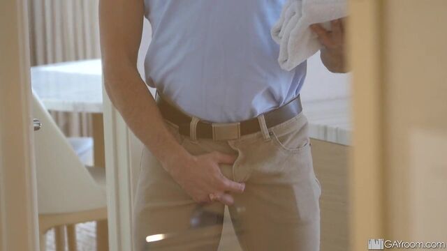 - Description: Asian muscle hunk calls for extra towels and is delivered housekeeper cock.