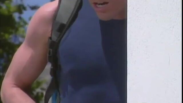 Johnny Brosnan continues on his Greek quest to find Roland Dane again, but first spies Joe Calderon and George Vidanov around the corner. Johnny strokes his cock, while George sucks Joe and then gets his ass fucked by Joe who blows his load all over.