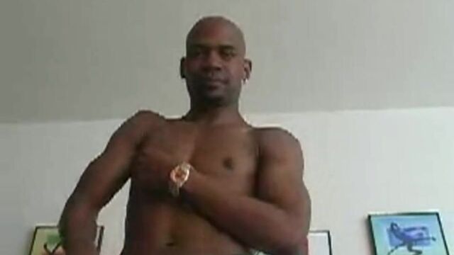 Didn't take long for Adrian to get out of college, make his way east from California and wind up sharing his considerable assets right in front of our cameras. Like many jocks, this former college basket ball player had a healthy exhibitionist streak and more then his share of check marks in his little black book - which is the only way the words 'little' have any connection to this black guy.Six feet tall with a big thick and long cream-filled chocolate pole to match and the more he showed it off, the harder it got! I wonder if the fabric from his uniform jersey rubbed his nipple rings as he played the game. That would explain not just the way he tugged on them while he stoked that big pole, but his tales from locker room showers as well.He is definitely a man of action and when it came time sink the basket, he made a power shot from those bug brown eggs that arced right to center court for a slam dunk spunk.