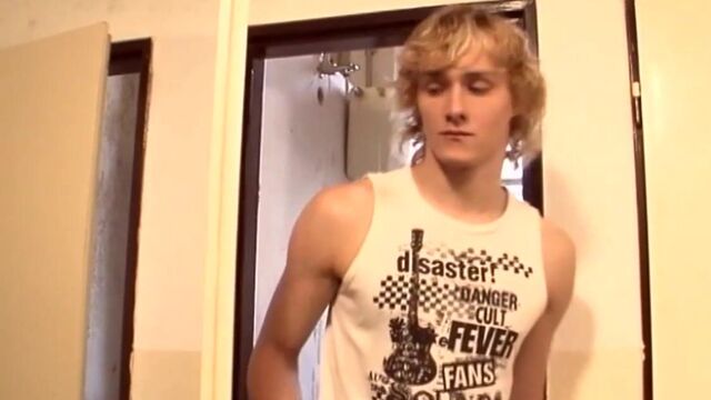 Catching blonde Dominik jerking off in the loo, cute young Johan jerks himself off, fantasizing about the sight he’s just seen, emptying his balls all over the urinal. It doesn’t end there, word has got out about sexy Dominik’s weekly wanks in the toilets, and Johan sneaks in to take advantage. Jumping into the cubicle, he catches our blonde boy at his horniest, turning him around, he yanks down his trousers and pushes his enormous cock straight into the smooth peachy ass. Mercilessly fucking, Johan grind deep inside, splashing his cum over the pale boys face and zips up and leaves, fully satisfied.