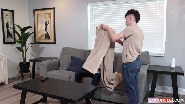 Damian invites his buddy Danny to hang out with him and watch something. Their plans are kinda crushed when Killian, Damian’s stepdad, joins them and puts on a boomer movie they don’t really care about. Yet, with Killian so fixed on the TV screen, Damian and Danny find something to entertain themselves: jerking each other off under a blanket. Their new plan backfires quickly as Killian discovers the twinks’ hands on each other’s cocks. The beefy stepdad just doesn’t want to be left behind, so he decides to give the boys a taste of a real man and invites them to suck his dick. Damian and Danny can hardly pass on the opportunity to savor that giant meat, so they let Killan join them and pound their sweet little assholes to spice things up.