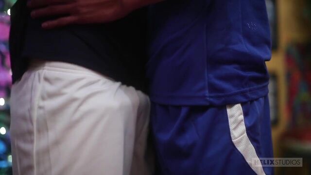Hot jock Josh Brady, and lusty latin twink Luca Ambrose spend the day at the park practicing for their big soccer game coming up. Brady has had his eye on Ambrose for a while, and teases the twink by taking his shirt off. Luca gets a good look and decides to show the hot stud his tight body as well. The more the boys practice the closer they get, and by the time they get home they're lip locked and ready for a sweaty session! After tearing away from brawny Brady's lips, Luca goes down to check out that swinging dick he's been spying all day.