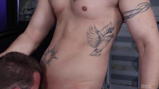 Stepbrothers Chad Taylor and Nic Sahara decide to try some bonding by fucking in a locker room.