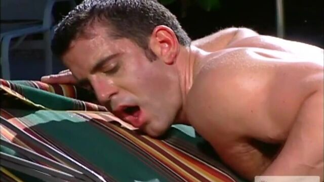 Hot House Man Matt Cole made his debut in our last smash hit, At Your Service, and we've been flooded with fan mail ever since! This superhung stud stands at a whopping 6' 1, has moviestar gorgeous looks, and is destined to be newcomer of the year. In Scene 1 Matt teams up with Jason Kingsley who's pulling on the 9.5 inch erection poking out of his blue Speedo. Before you can say lickety split, Matt jumps out of the pool, stuffs the fat piece in his mouth, and begins to suck. Jason slides his hand down Matt's back and into his Speedo, working a moistened finger in his butt hole to prime him for pumping. After putting Matt on all fours, Jason pulls behind him to bathe his hole with spit, then rams his dick right up his asshole and begins to fuck. The two studs drip with perspiration from the blazing California sun as Jason continues to blister Matt's tight chute. Unable to contain himself, the pair flip positions so that Jason can put his gigantic bubble butt into action. He squats down on all 9 inches of Matt's beauty of a cock and begins to ride. This is the stuff fantasies are made of: 2 unbelievably hot, beefy men with huge cocks and big round asses fucking and grunting in the desert heat until they shoot their loads!