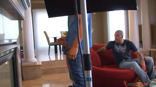 - Description: Austin Wilde and Brandon Lewis are on the set having photos snapped at every direction. These two studs are warming up for the actual scene.