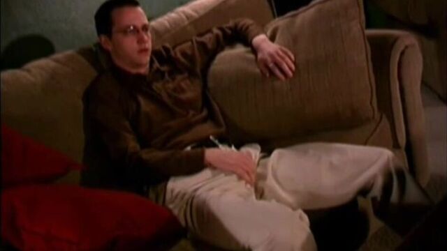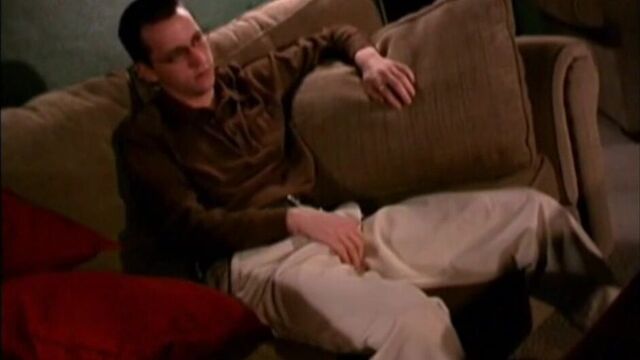 - Description: Cutie Royal Roberts jacks off to porn on his big screen tv.
