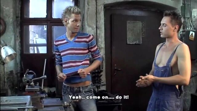 Huge dicked Billy Jay returns for more barebacking fun. Sexy blonde haired Chris gets trained up by Billy, and gets an offer for a more sexual training and quickly shows that there's no need for any!! Chris sucks on Billy's dick, making it fully hard, and fully massive, tickling his cock-end with his pierced tongue, Billy soon shoots all over his apprentice's face, lapping up the hot spunk.Chris isn't finished, and is more rampant than ever; getting his fellow colleague in the next room just as horny as he is. Sucking on Mark's thick dick, Chris must have a mouth like a vacuum cleaner as he gets both guys shooting their loads on his sexy face.Meeting Billy once again in the showers, this rampant bottom boy wants cock feed into his ass this time, and has Billy's dick in mind to split his hole and pound away. Sliding it deep inside him, his hole is stretched apart and he loves it!! Pushing against it, he can feel the whole length from tip to hilt being rammed into him.