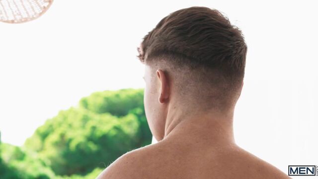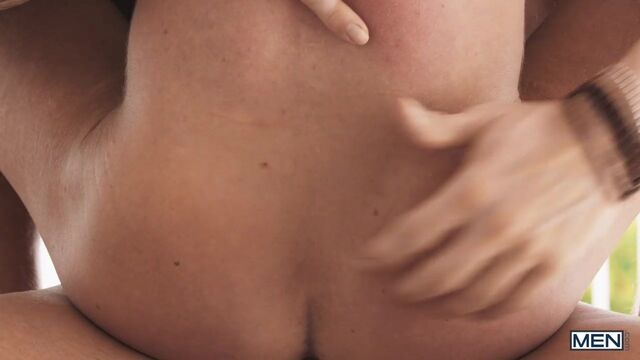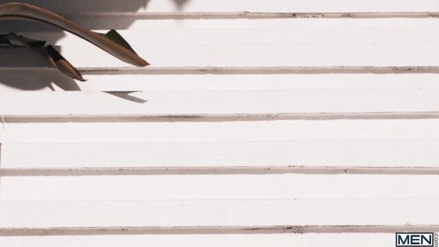 The best part of a vacation is the vacation sex. Austin Wolf gets out of a luxuriant bubble bath and looks out at Dean Young sunbathing on a lounge chair. Dean and Austin meet on the porch, where the breeze caresses their skin as they kiss. The hunks are too wrapped up in each other to take in the view as Dean sucks the top and Austin fingers his hole, then rims him. Dean gets on all fours on the table to take Austin's cock, then Austin fucks him on his back. Dean rides the top, then cums as Austin drills him in missionary, and he eagerly takes a facial.