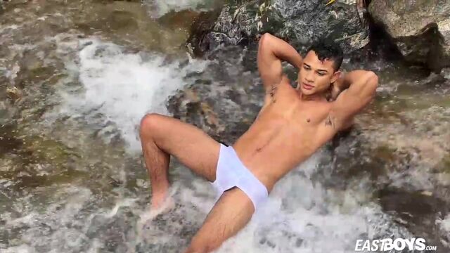Beisel is stunningly attractive guy with an awesome athletic body, wide shoulders and ripped muscles. We took Beisel to local waterfalls for a quick dip and some muscle flexing and also show his cock the beautiful scenery. Beisel had a nice jerk-off right there. To finish things off Beisel did come curls with heavy rocks. Enjoy!