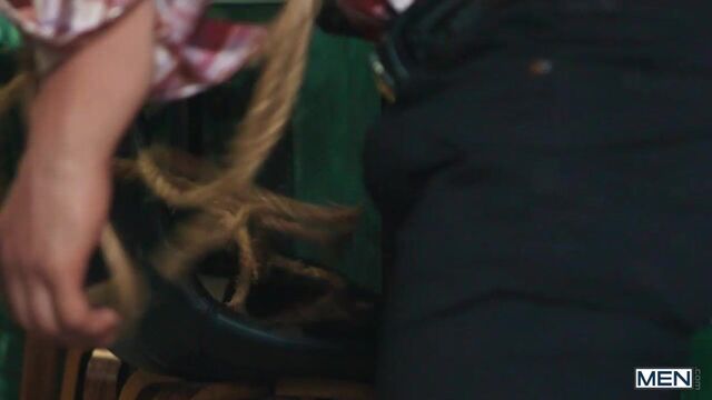 Malik Delgaty is line dancing when he sees Zack Mackay stroll into the bar. Zack spots Malik checking out his big ass and beckons him over, but Malik tells him to come dance, then pulls out a rope and lassos the bottom! The guys play some pool, and Malik bends Zack over the table as he pounds his hole. Zack sucks the top, then gets in the saddle to ride that cowboy! Malik puts him up against the wall to drill him from behind, then jacks him off as he fucks him on his back till both the cowboys cum.